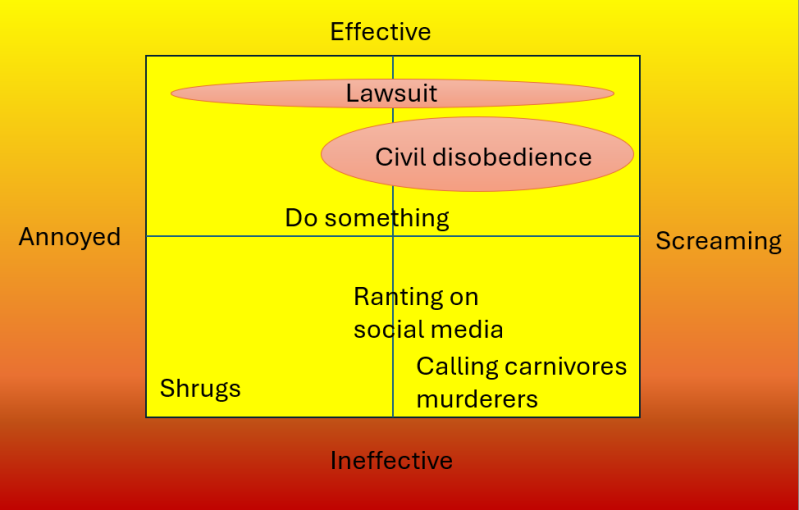 Rage is a particularly powerful emotion that can both be very effective and ineffective at eliciting change. Who ever experienced a good row with their spouse or parents and felt the relief and new understanding afterwards can testify to the effectiveness. Whoever was stonewalled by the other party can testify to the ineffectiveness.